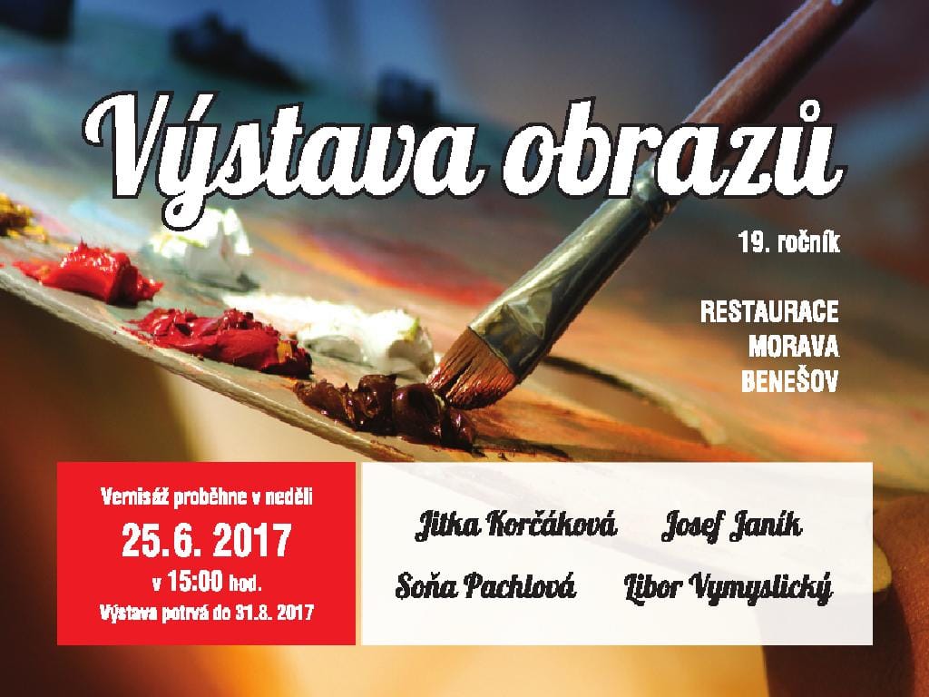 Byl jsem pozván, abych se zúčastnil 19.ročníku společné letní výstavy v příjemné restauraci Morava v Benešově u Boskovic. Je mi ctí, být součástí akce, která má tak dlouhou tradici a je vyhledávanou kulturní akcí. Vernisáž proběhla v neděli 25.6.2017 za účasti všech autorů a musím poděkovat za obrovskou inspiraci krásnou tvorbou mých kolegů – podívejte se do galerie…no není to krása? Zastavte se při svých letních výletech, protože je tam mnoho k vidění 🙂