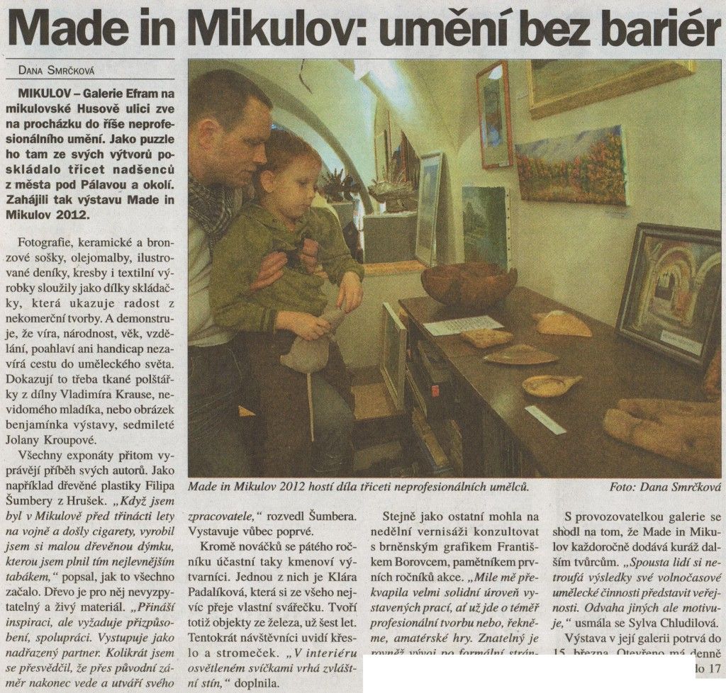 Dostal jsem pozvání od výtvarnice a galeristky paní Chludilové k účasti na společné výstavě MADE IN MIKULOV, kde jsem se prezentoval spolu s ostatními amatérskými výtvarníky regionu.