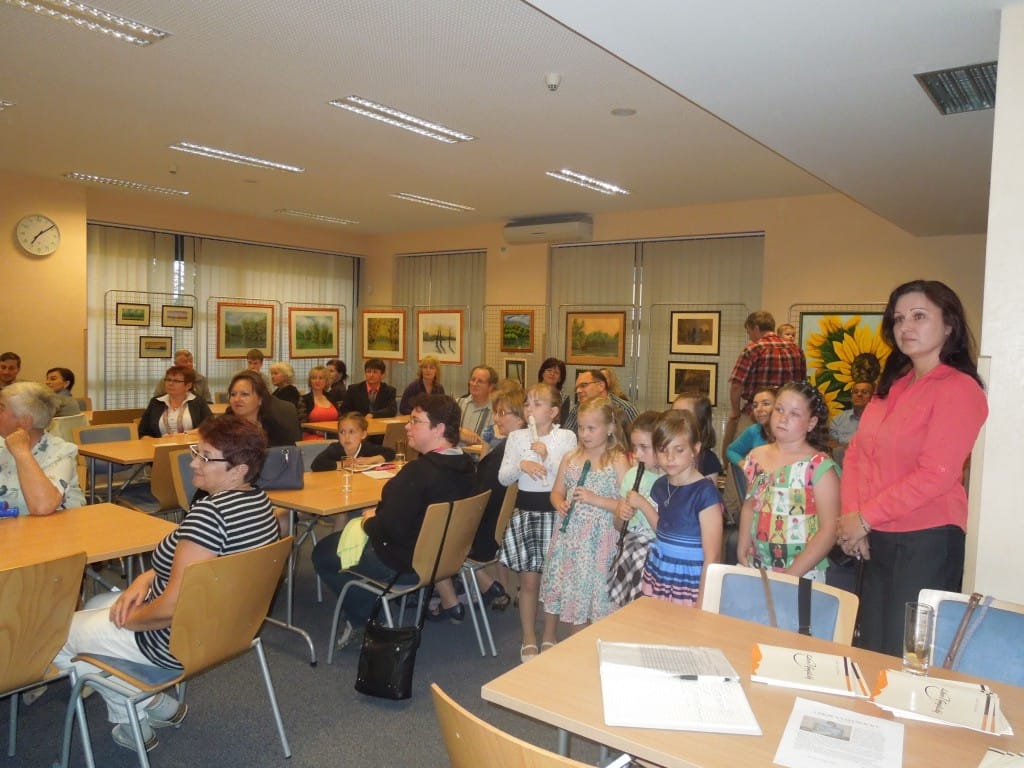 Po úspěšné výstavě v Lázních Lednice jsem byl osloven paní Čermákovou z Lázní Hodonín, jestli bychom mohli udělat podobnou akci i pro jejich návštěvníky. Trochu se v tom angažovala i moje bývalá třídní učitelka paní Raclavská, která je pravidelným klientem hodonínských lázní. Tentokrát jsme program obohatili i o vystoupení dětí s flétničkami z hudebního kroužku při ZŠ Slovácká pod vedením paní učitelky Sůkalové. Zážitek to byl nejen pro mě parádní, protože děti zahrály několik lidových písniček a když se k nim přidal s cimbálem Tomáš Svačina… 🙂
