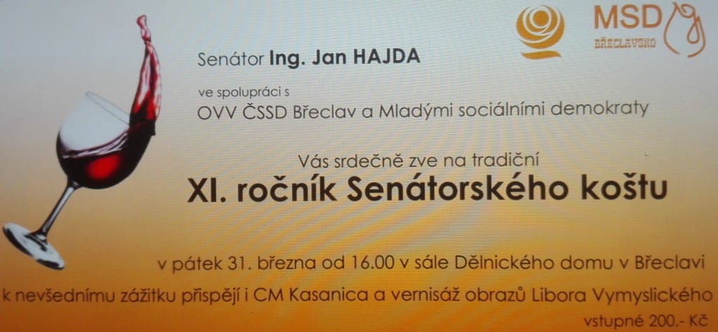 Senátorem Ing.Janem Hajdou jsem byl pozván k uspořádání výstavy při Xl. ročníku Senátorského koštu vín v Dělnickém domě v Břeclavi. Na košt byla pozvána mimo jiné ministryně práce a sociálních věcí ČR Mgr.Michaela Marksová, které jsem při té příležitosti předal obraz jako památku na návštěvu Břeclavi.