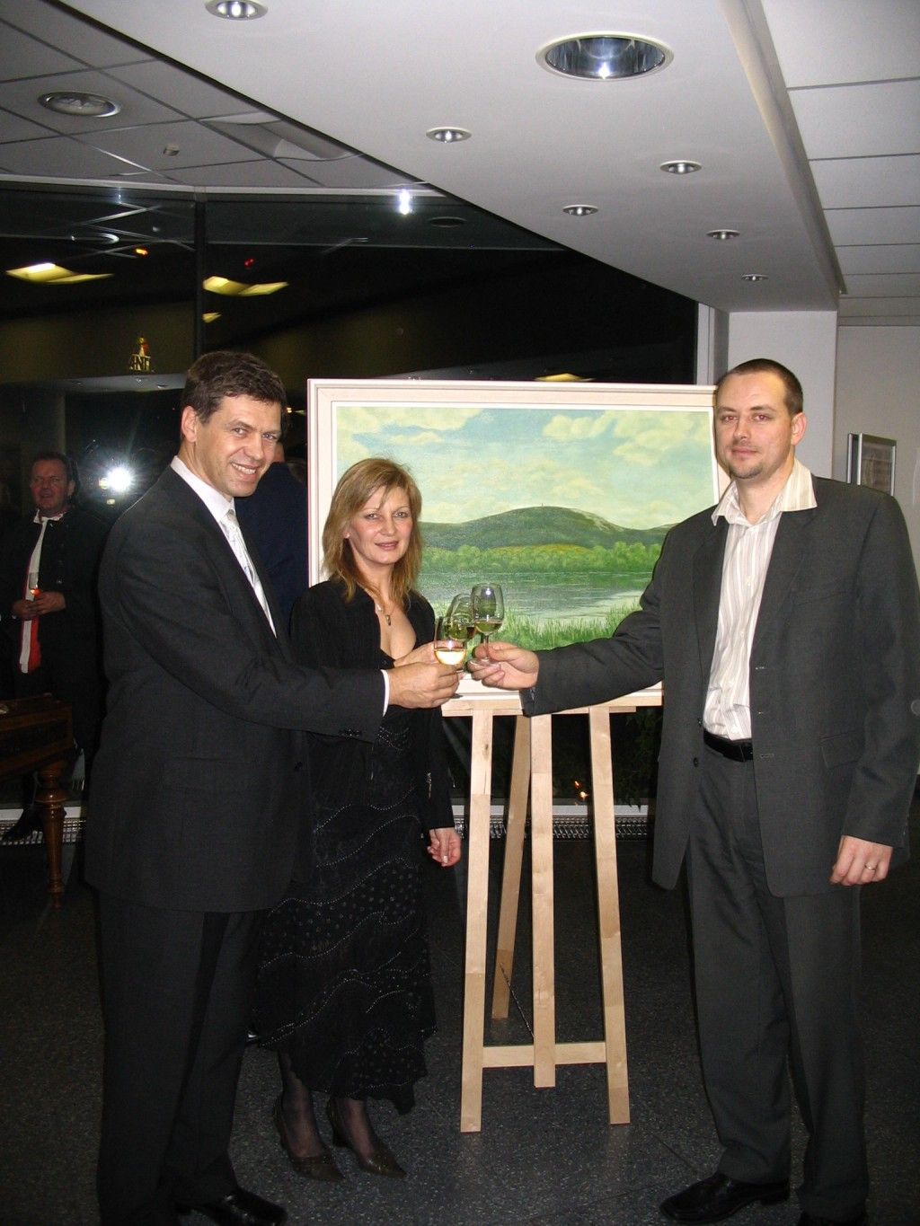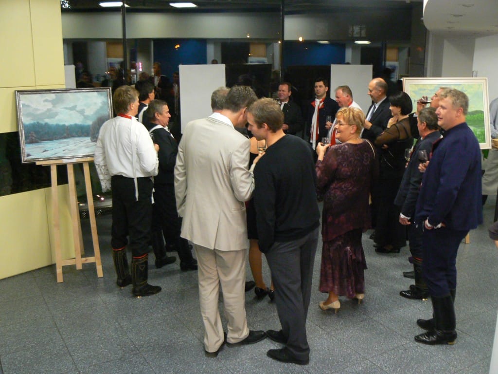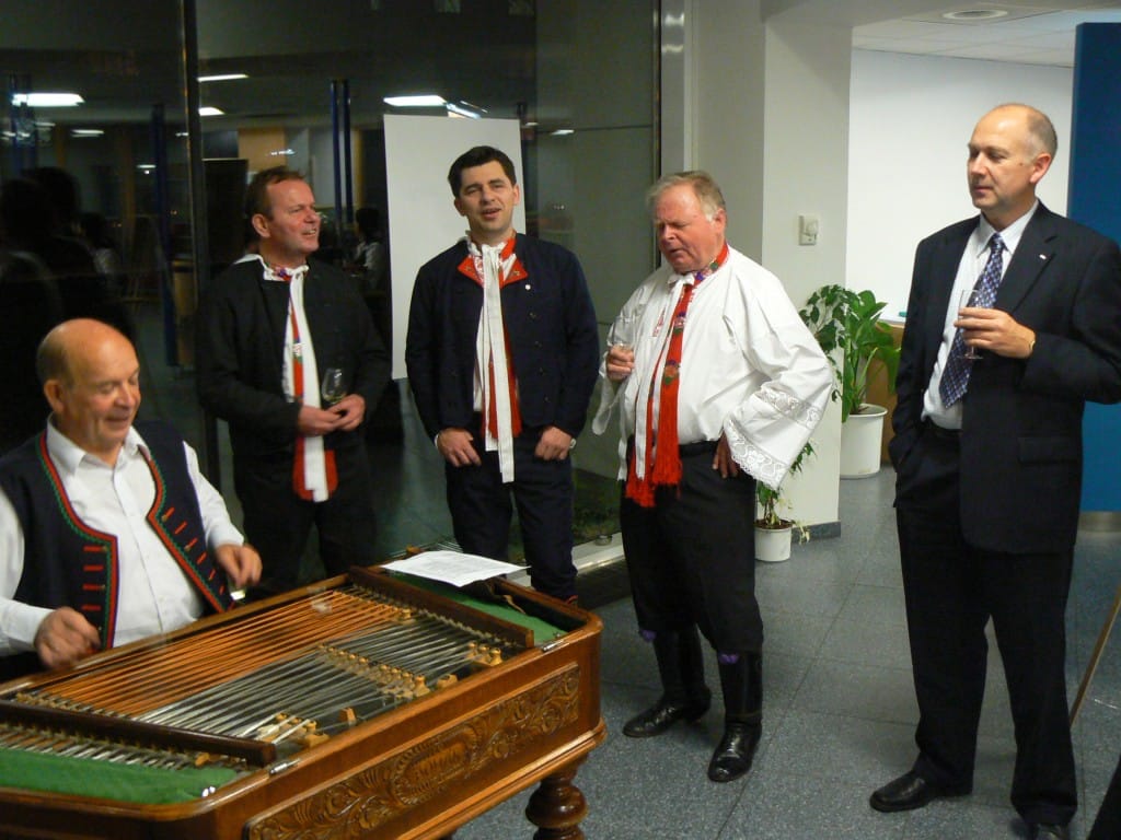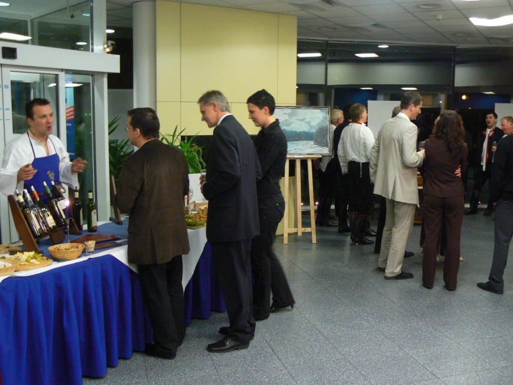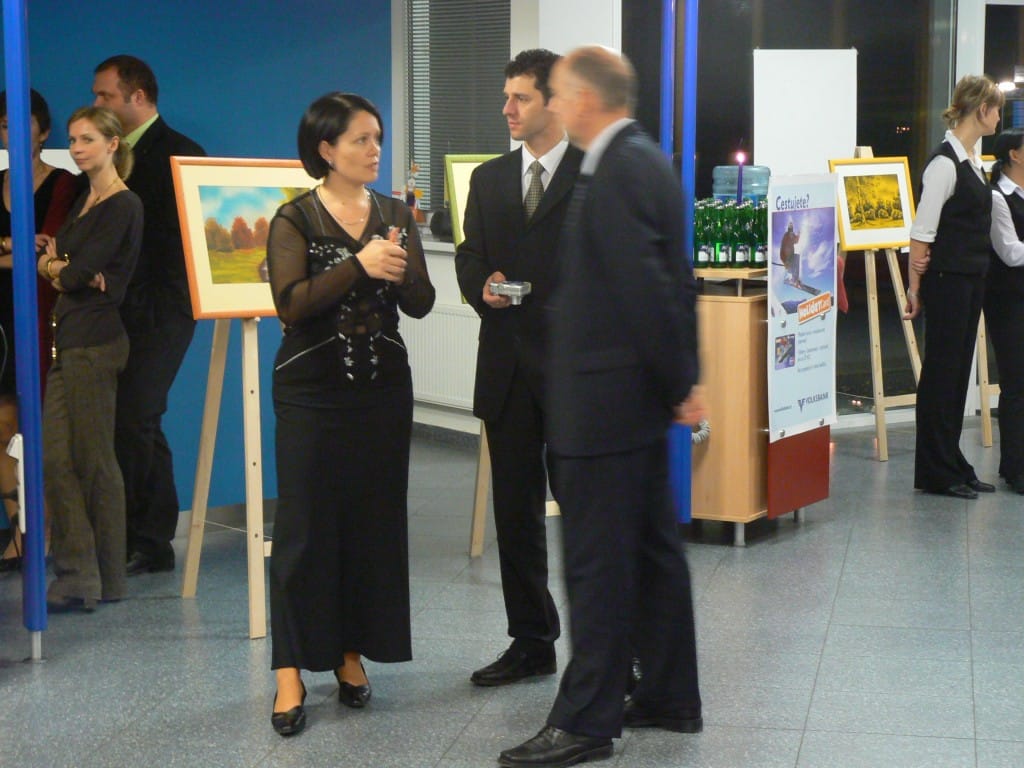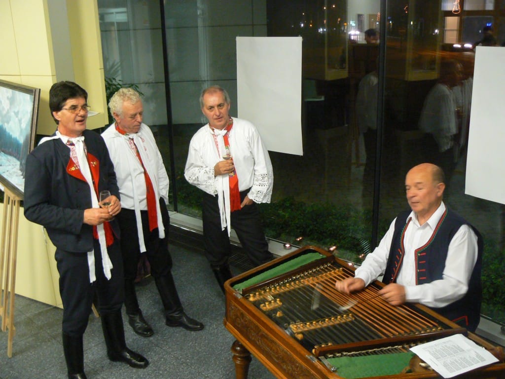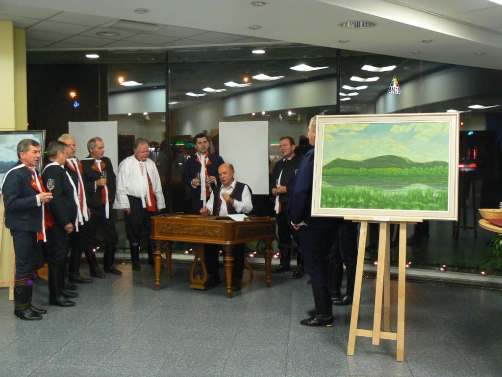 To se tak jednou v jedné bance rozhodovalo, jakou kulturní akci připravit se závěrem roku pro VIP klienty. Jakou náhodou v oné bance pracuje můj bratr a mezi řádky zmíní, že by se možná hodila výstava a lidová písnička. No a vedení banky se jalo nápad zrealizovat. Tak se stalo, že jsme uspořádali spolu s Lanštorfčany vernisáž a večer s cimbálem. Vypravili jsme se směr Zlín ještě s paní Boženkou Uhrovou, která výstavu zahájila spolu s panem ředitelem banky Ing.Malovaným. Majstr cimbalista pan Šulák doprovázel mužáky po celý večer na svůj nástroj a během chvíle se k nim zpěvem lidových písní přidali všichni zúčastnění při ochutnávce vína.