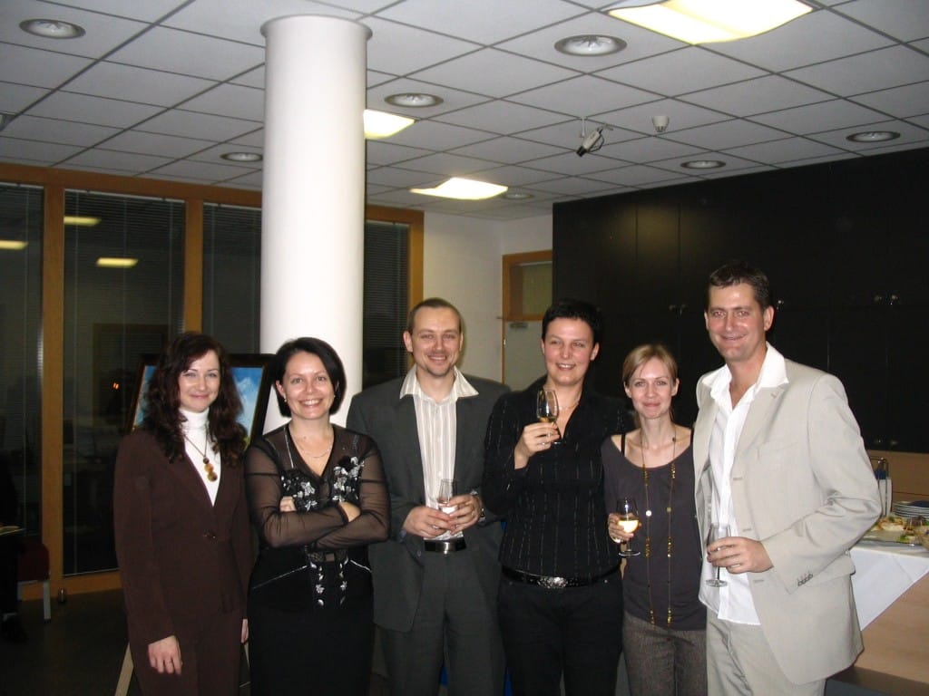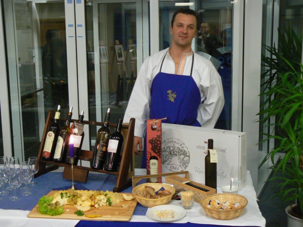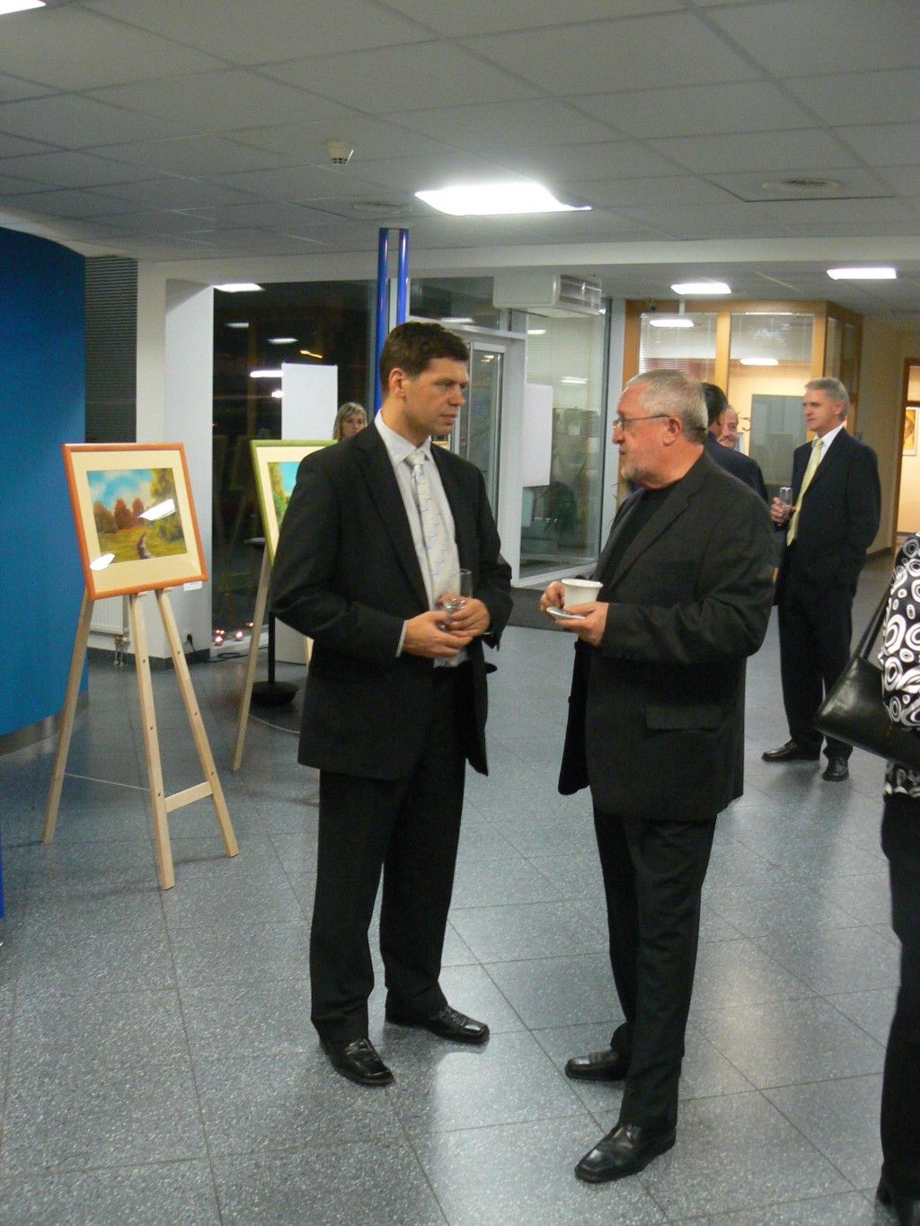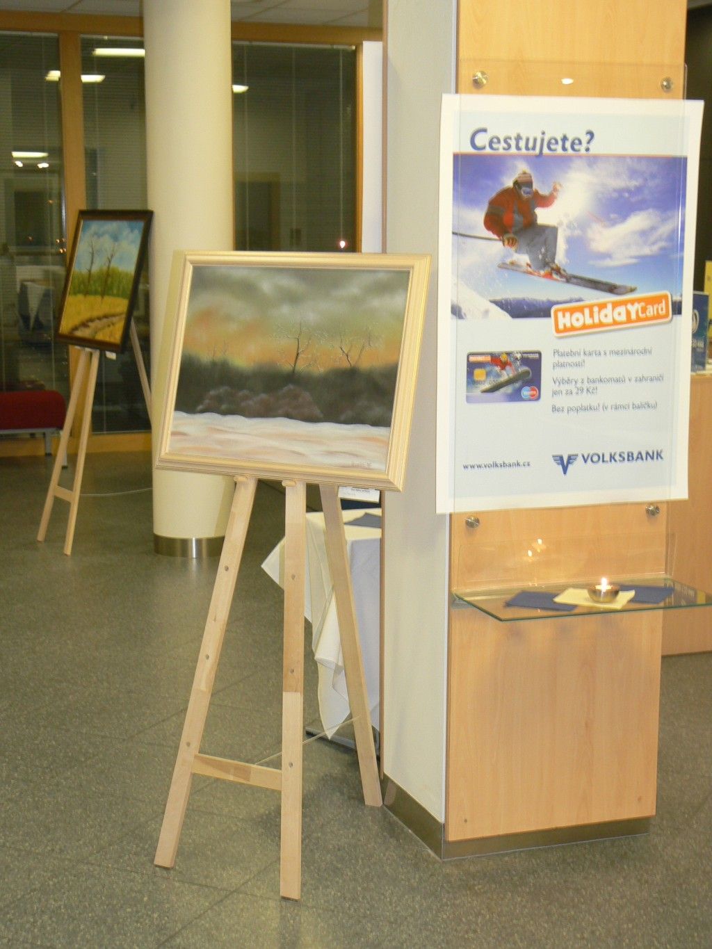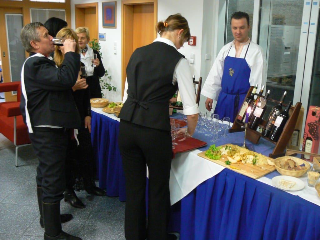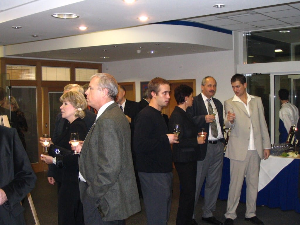 To se tak jednou v jedné bance rozhodovalo, jakou kulturní akci připravit se závěrem roku pro VIP klienty. Jakou náhodou v oné bance pracuje můj bratr a mezi řádky zmíní, že by se možná hodila výstava a lidová písnička. No a vedení banky se jalo nápad zrealizovat. Tak se stalo, že jsme uspořádali spolu s Lanštorfčany vernisáž a večer s cimbálem. Vypravili jsme se směr Zlín ještě s paní Boženkou Uhrovou, která výstavu zahájila spolu s panem ředitelem banky Ing.Malovaným. Majstr cimbalista pan Šulák doprovázel mužáky po celý večer na svůj nástroj a během chvíle se k nim zpěvem lidových písní přidali všichni zúčastnění při ochutnávce vína.